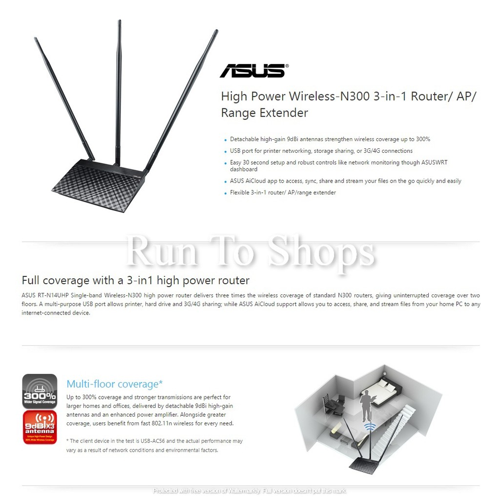Asus Rt N14uhp High Power N300 3 In 1 Wi Fi Router Access Point Repeater With Detachable High Gain 9dbi Antenna For Shopee Singapore